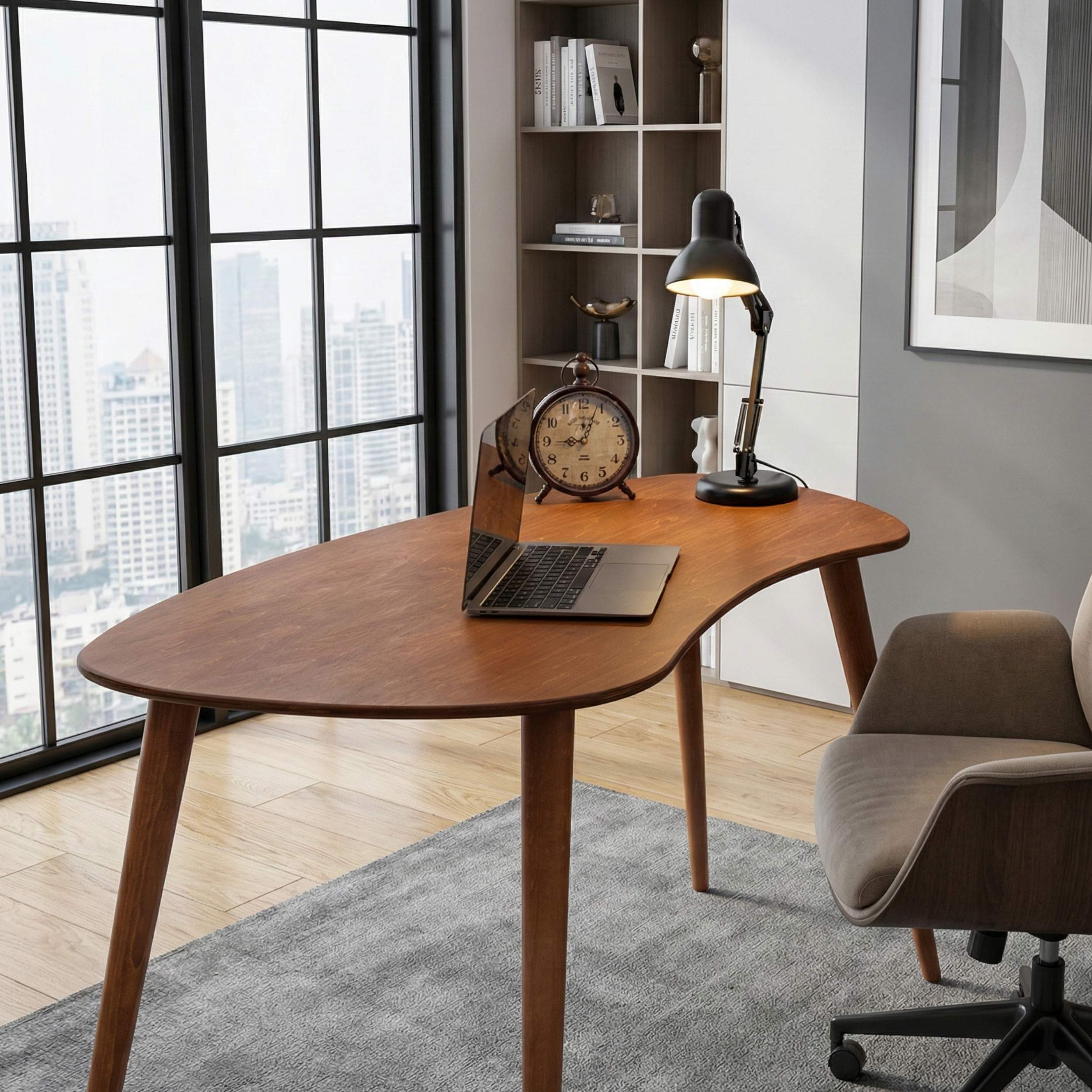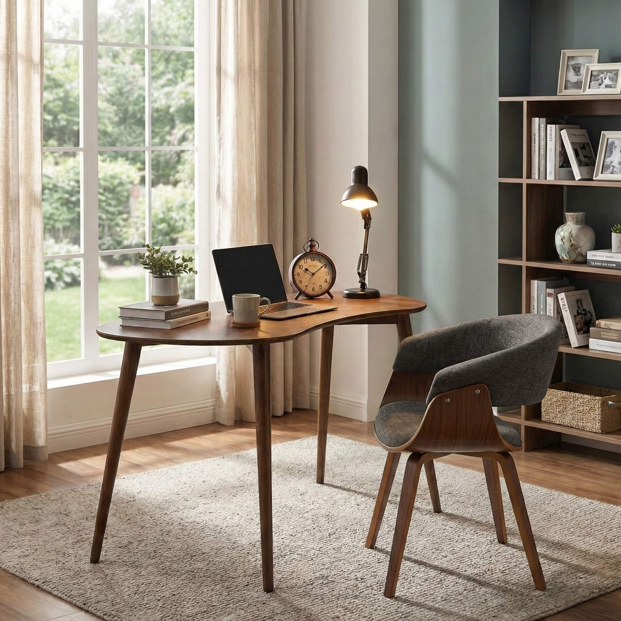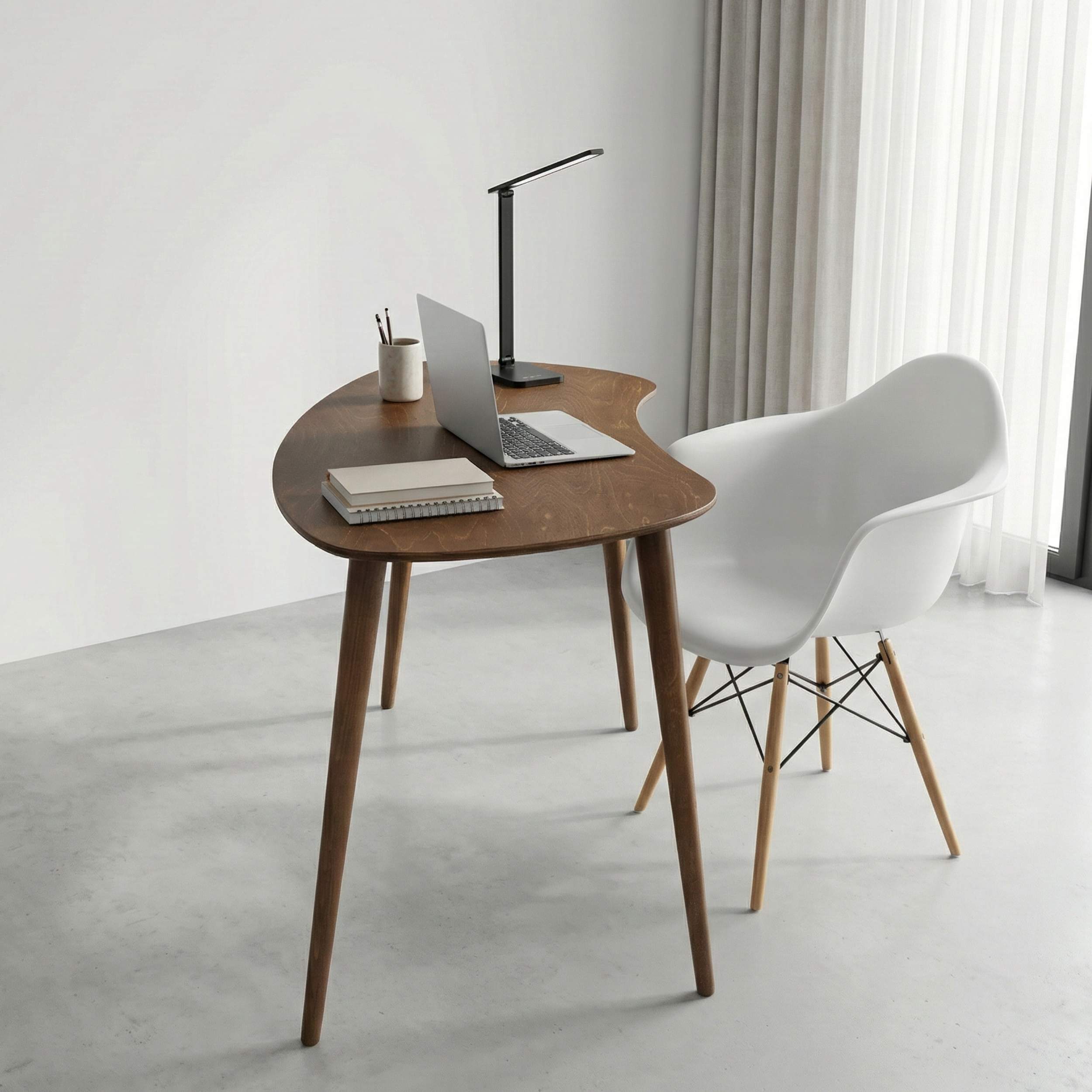 مكتب منزلي بسيط من خشب البتولا الرقائقي ذو حواف مستديرة