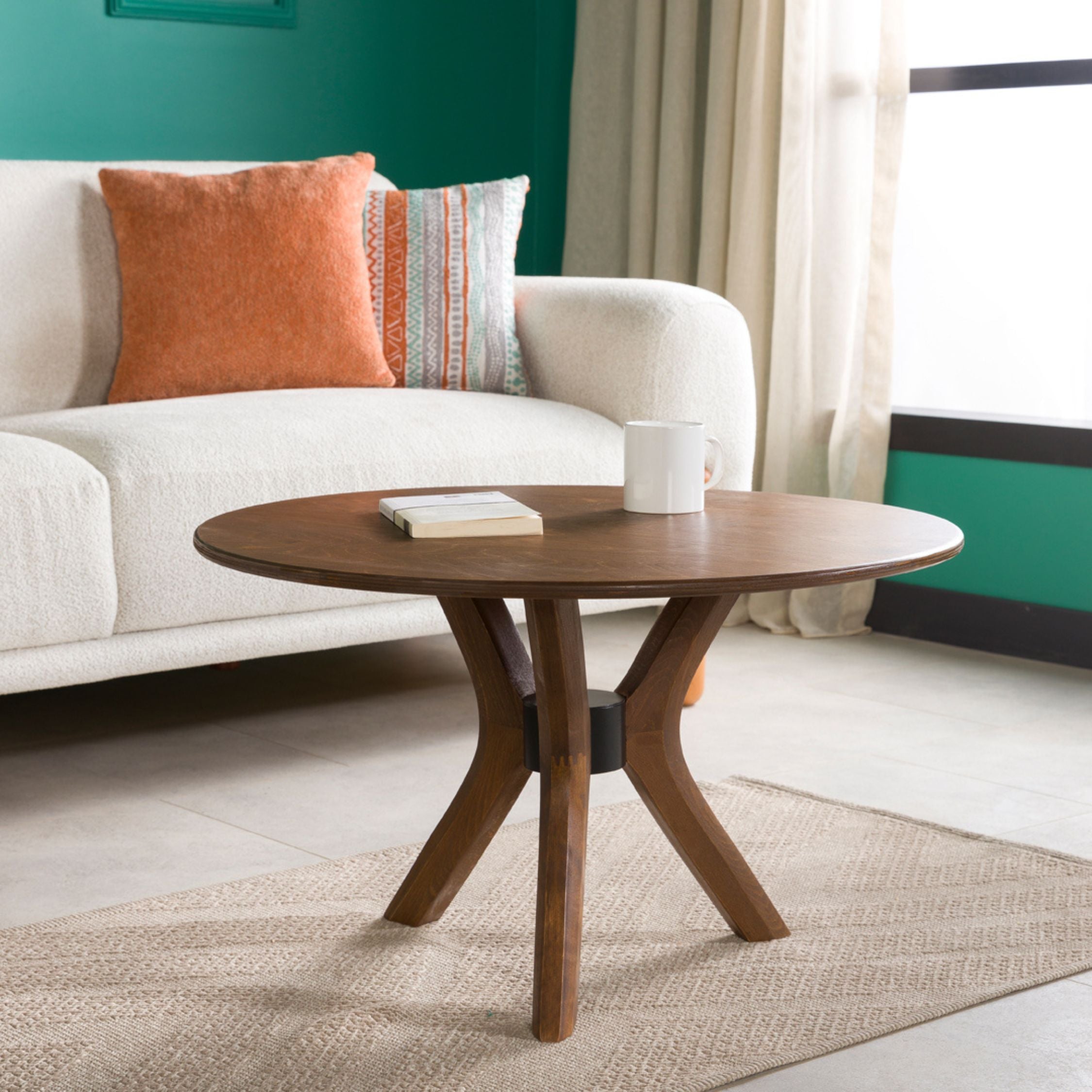 طاولة قهوة مستديرة من الخشب الصلب بقاعدة ثلاثية الأرجل