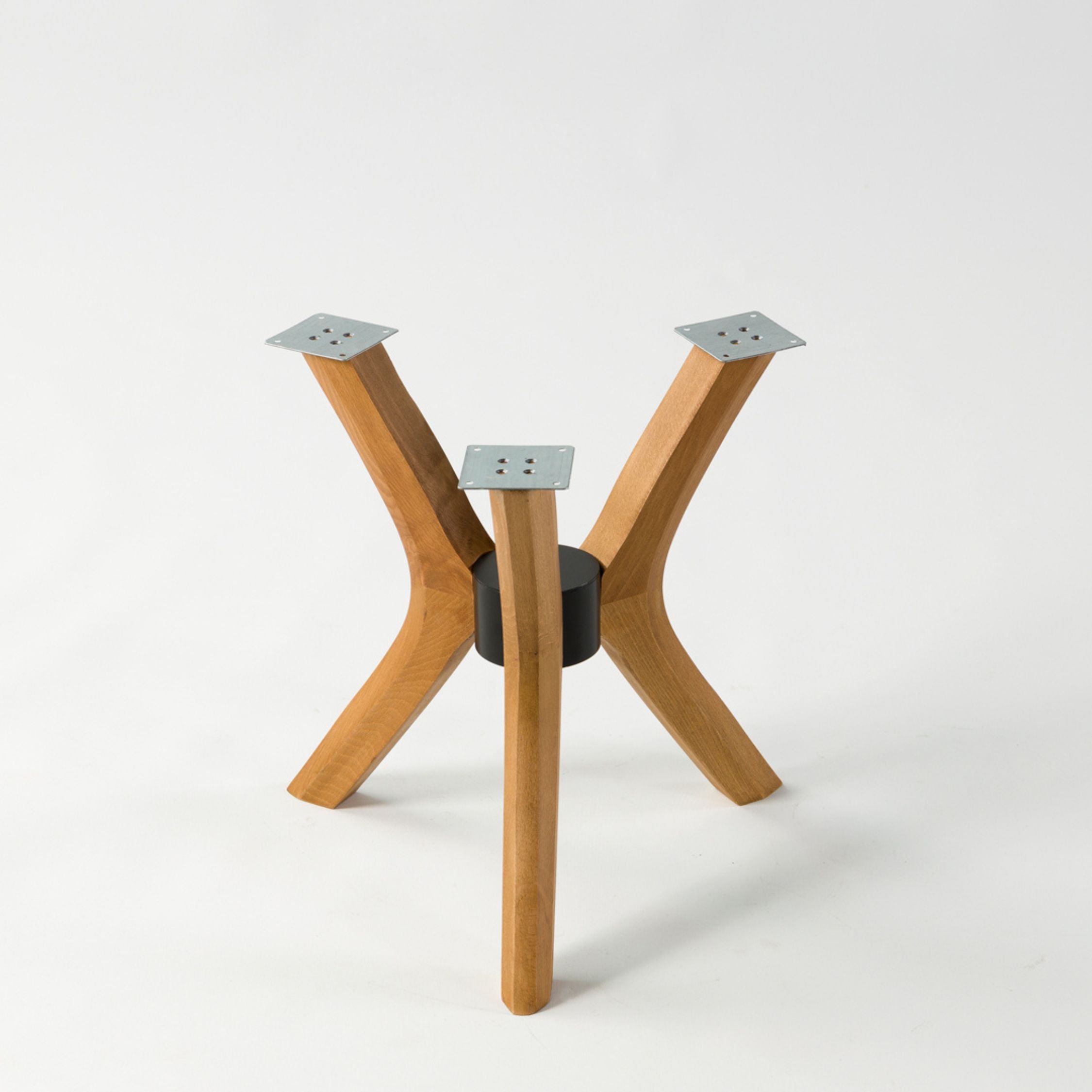 قاعدة طاولة قهوة دائرية خشبية على شكل فراشة - تصميم بثلاثة أرجل لطاولات دائرية