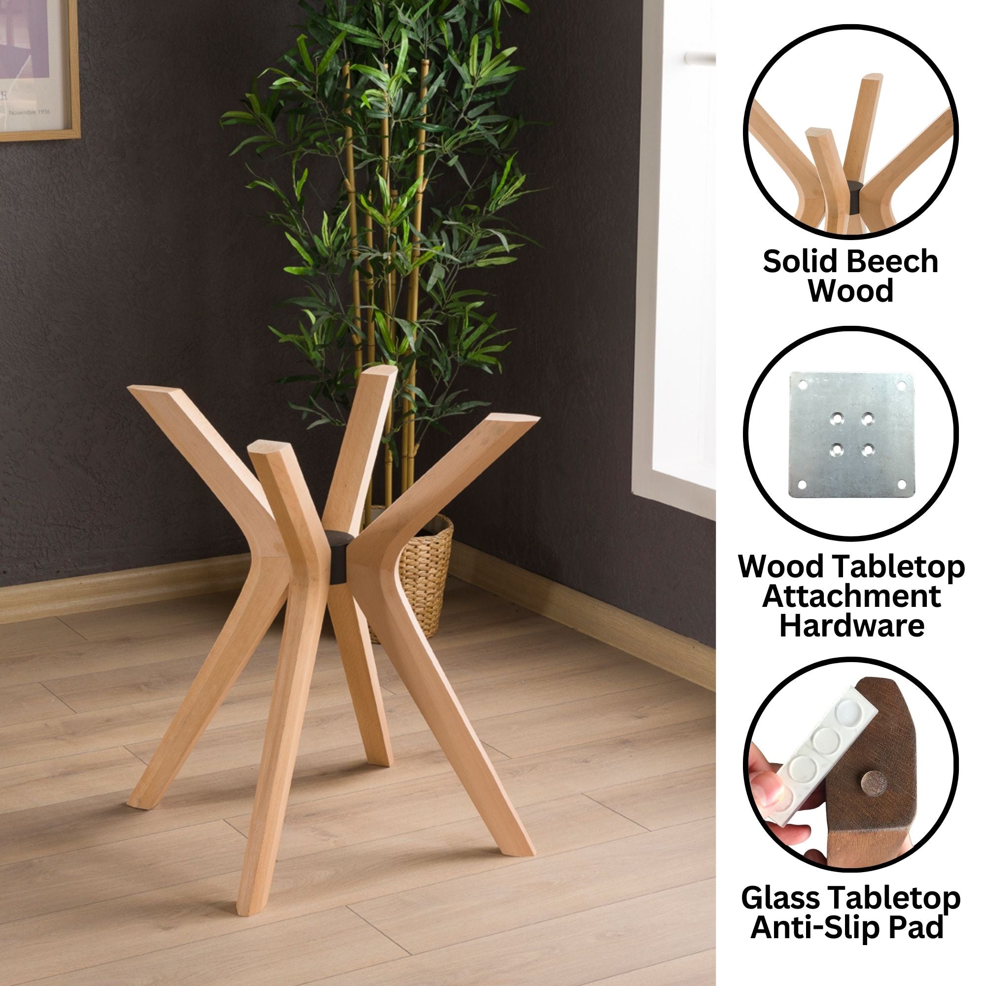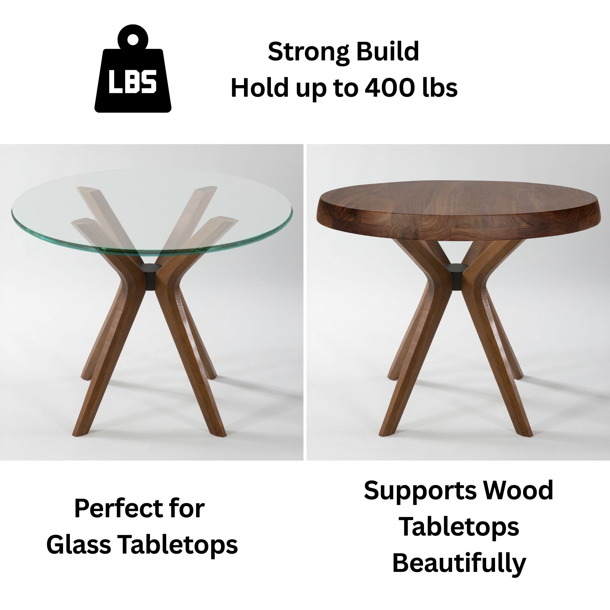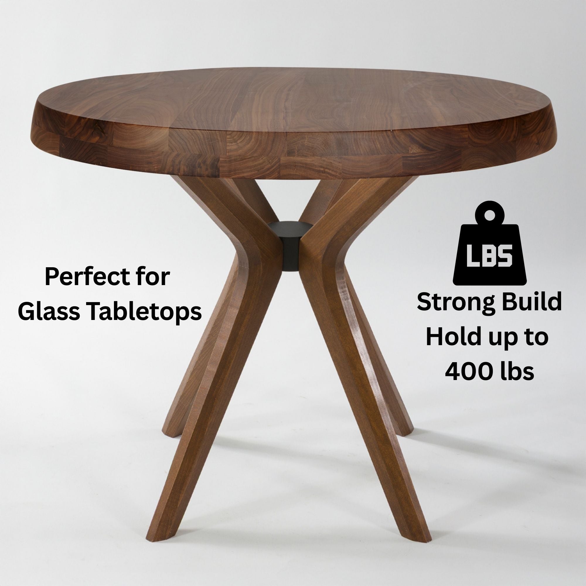 قاعدة طاولة خشبية ثلاثية الأرجل مصنوعة يدويًا - متعددة الاستخدامات للطاولات الخشبية أو الزجاجية أو الرخامية | تصميم متين، سعة 22 كجم، تتضمن أدوات تثبيت أو وسادات مانعة للانزلاق