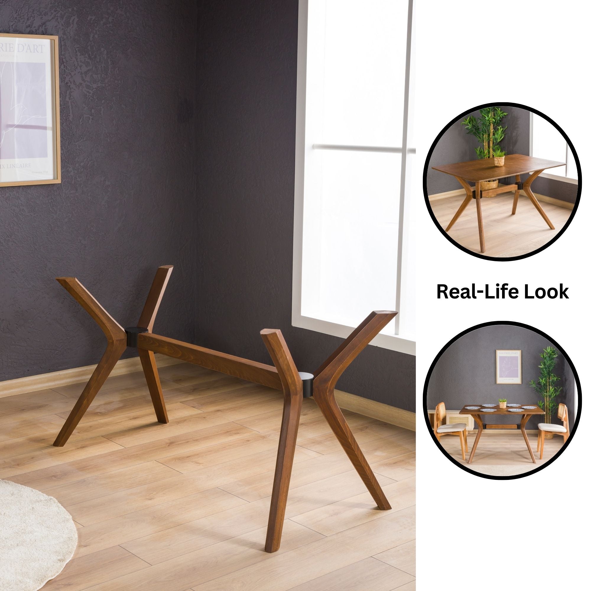 Butterfly Tischgestell aus Holz – 4-Bein-Design für rechteckige Tischplatten