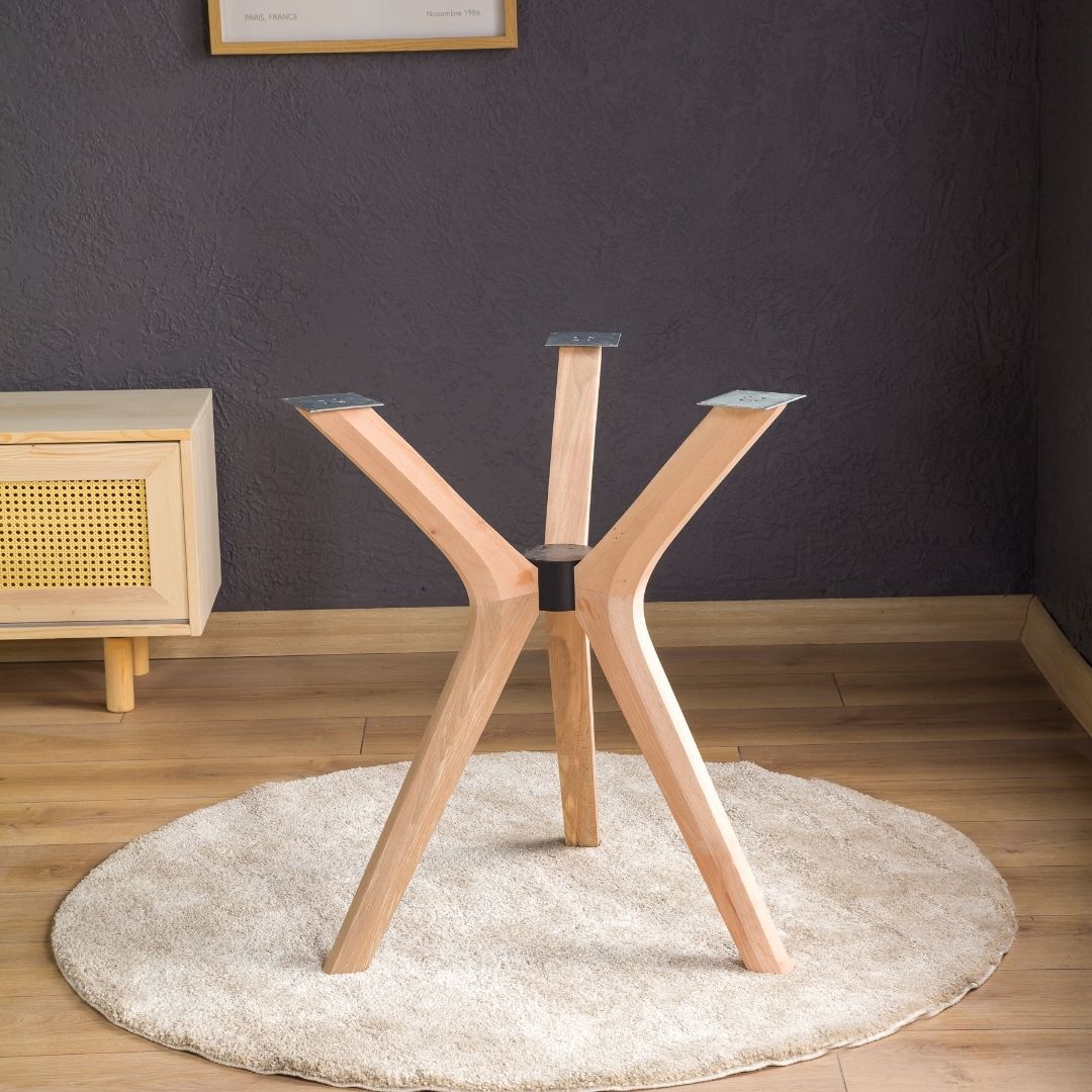 Werten Sie Ihren Raum mit unserem handgefertigten dreibeinigen Holztischgestell auf – einer vielseitigen und eleganten Grundlage für Ihren Traumtisch. Ob mit Tischplatten aus Holz, Glas, Marmor oder Metall – dieses Gestell bietet die perfekte Kombination aus Stil, Stabilität und Funktionalität.