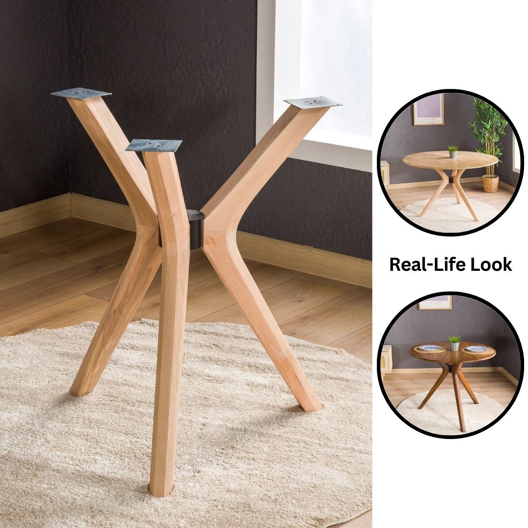 Handgefertigtes 3-Bein-Tischgestell aus Holz – Vielseitig einsetzbar für Tischplatten aus Holz, Glas oder Marmor | Robuste Konstruktion, Tragkraft 22,7 kg, inklusive Montagematerial oder Anti-Rutsch-Pads