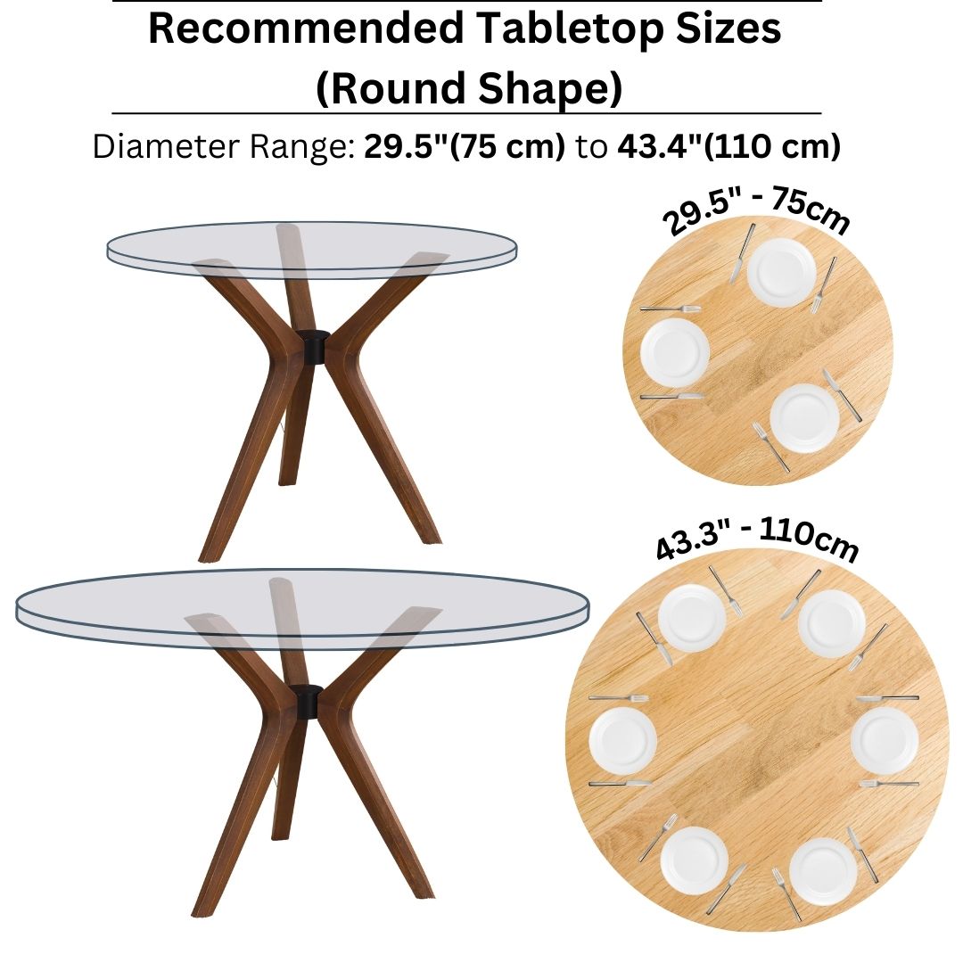 • Empfohlene Tischplattengrößen: Am besten geeignet für Tischplatten mit Durchmessern zwischen 29,5 Zoll und 43,3 Zoll , um Ausgewogenheit und Ästhetik zu gewährleisten.