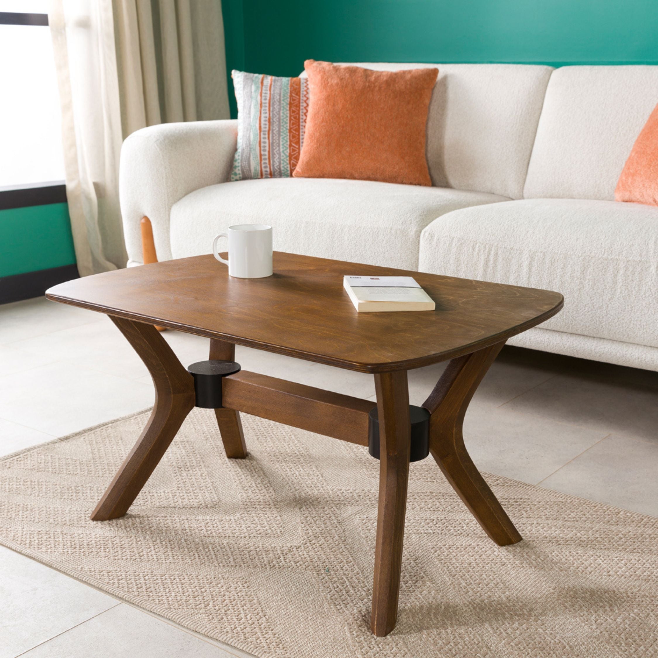 Modern Rectangle Coffee Table with Solid Wood Butterfly Legs