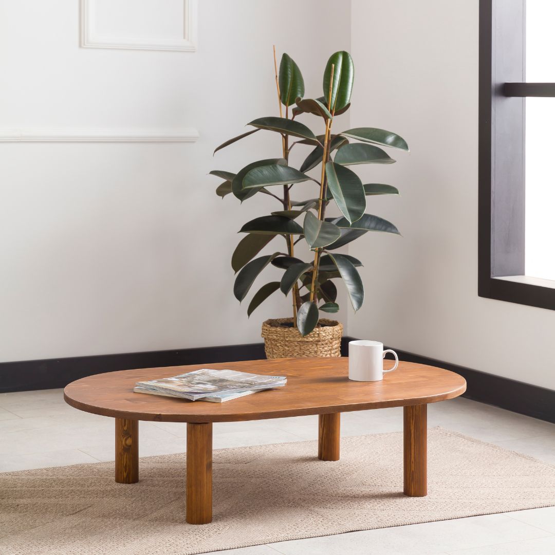 Oval Solid Pine Wood Low Coffee Table – Minimalist Elegance for Modern & Cozy Living Spaces