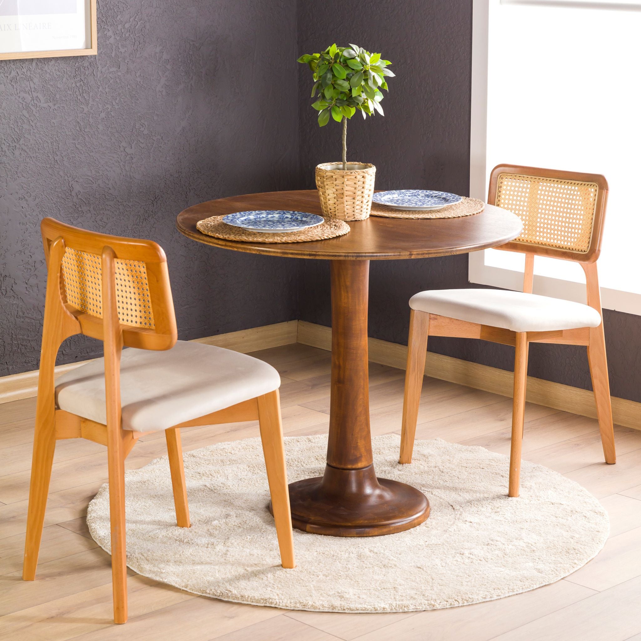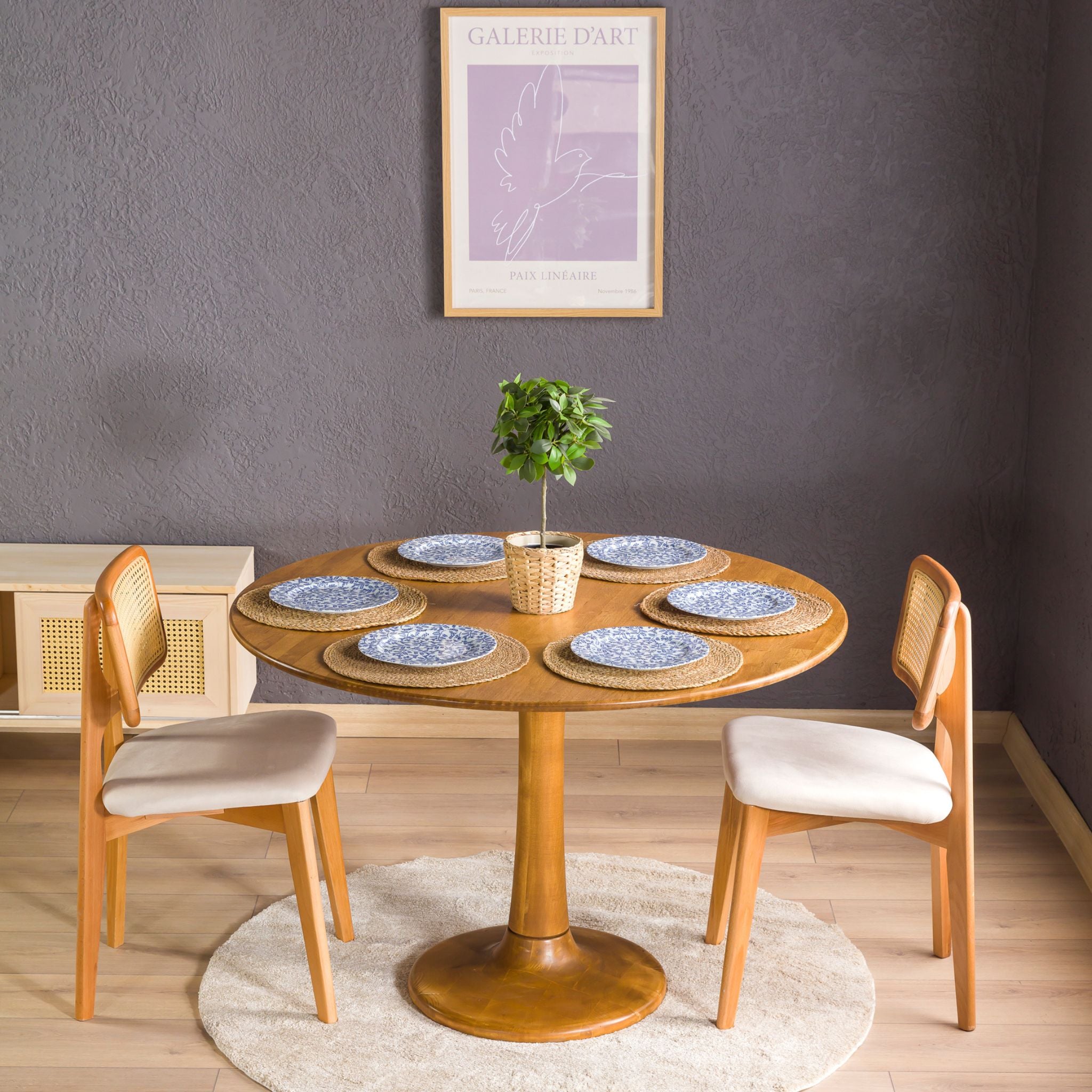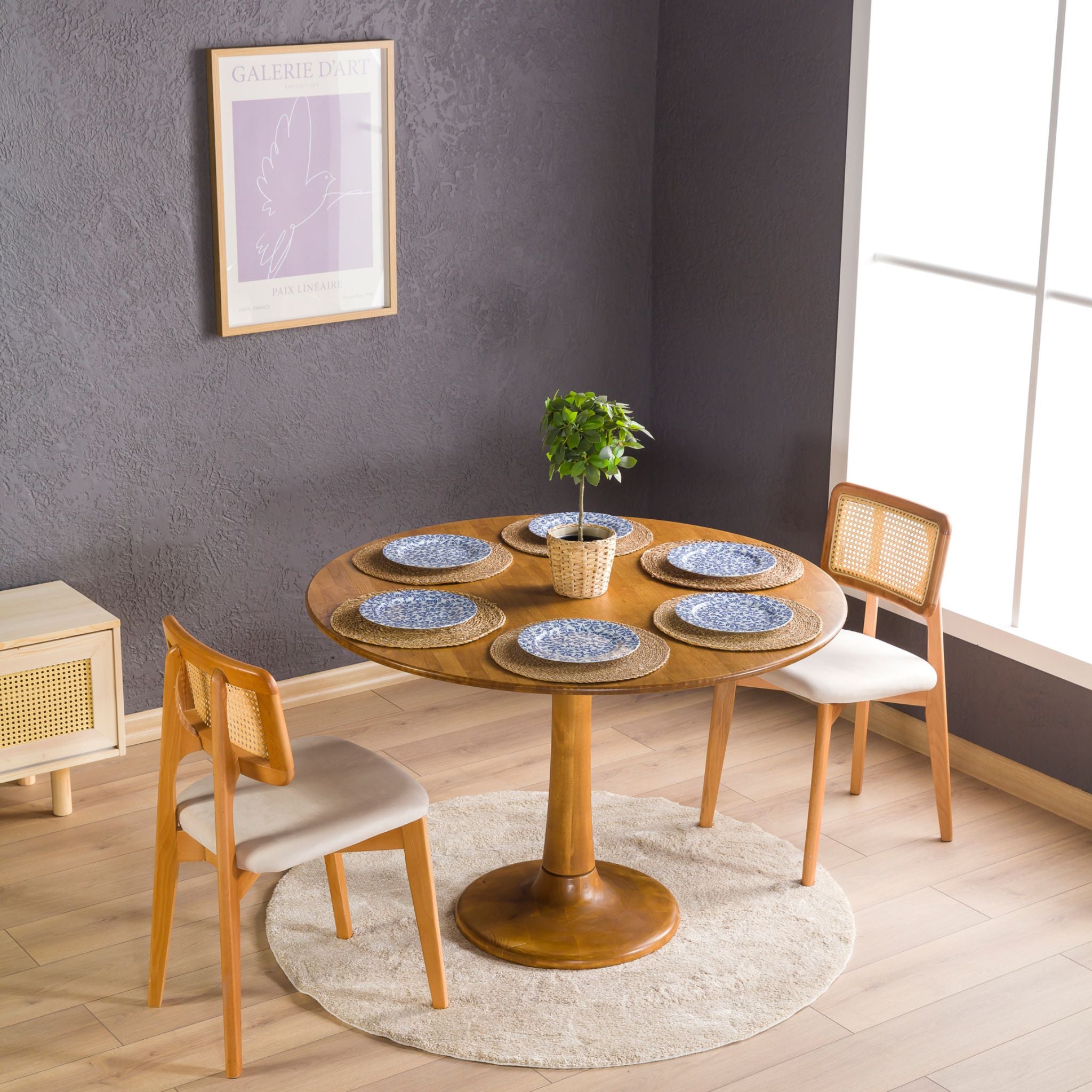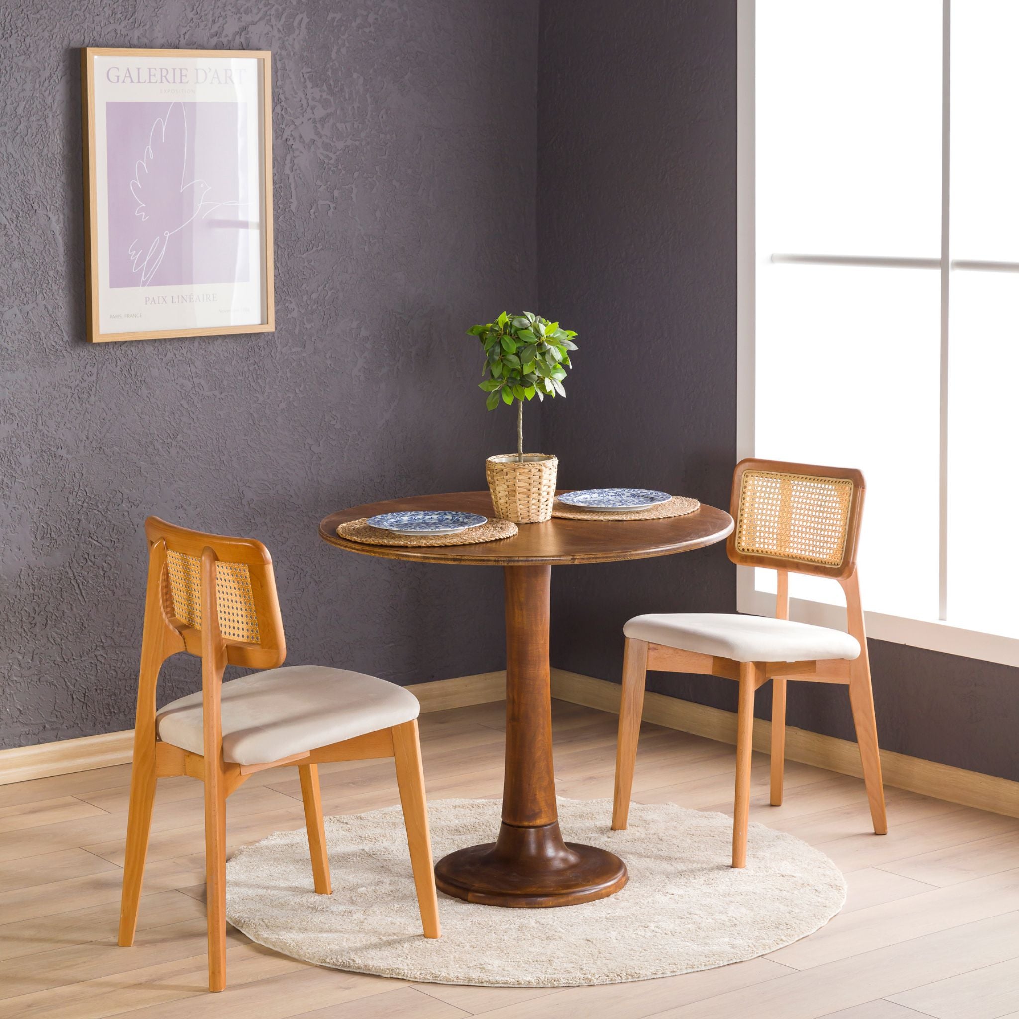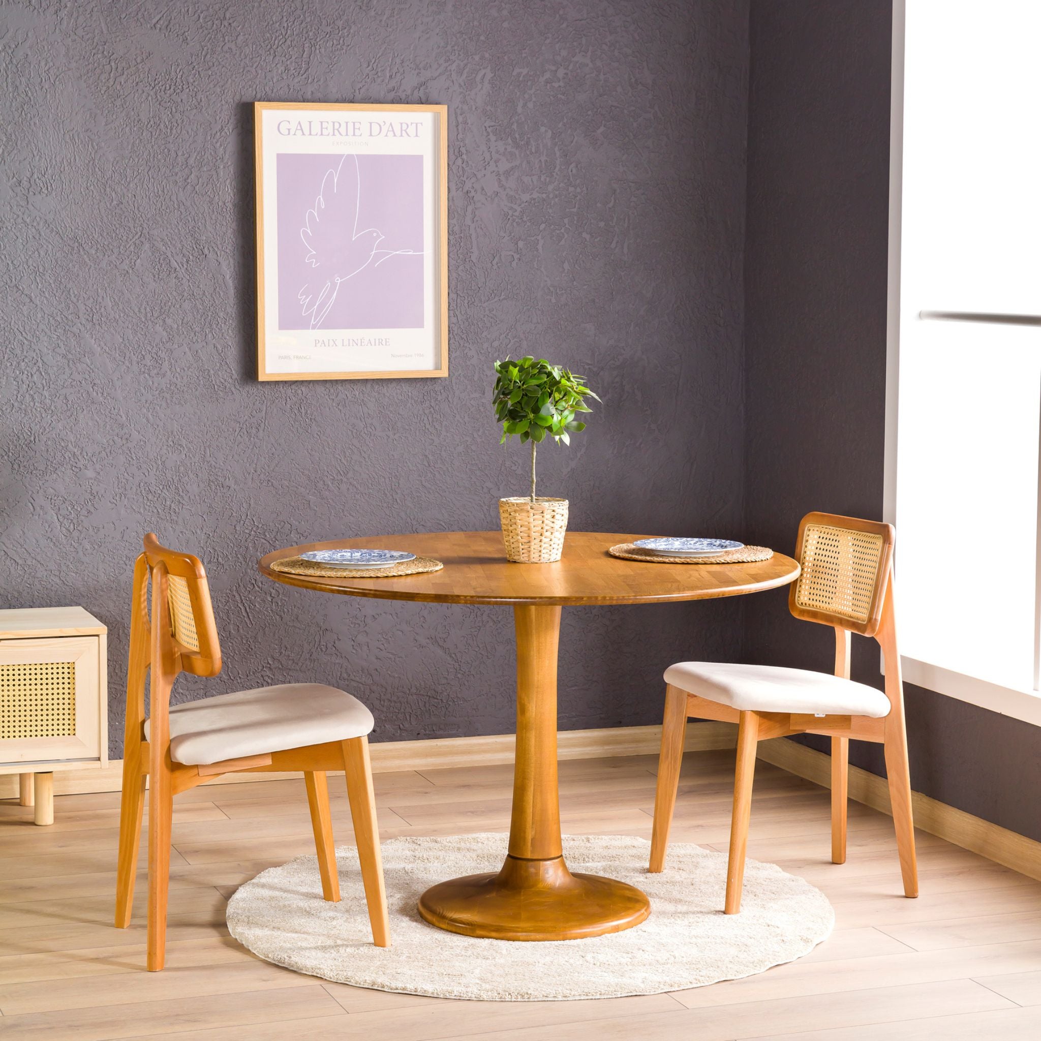 Handcrafted from premium solid oak and finished with eco-friendly, water-based stains, it highlights the natural grain, color depth, and organic character of real wood. Its round tabletop creates a soft, inviting presence—perfect for intimate dining, cozy breakfasts, or stylish gathering spaces.