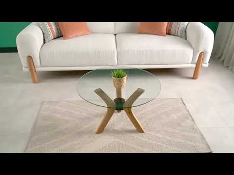 Round Glass Coffee Table – Clear Tempered Glass Top & Solid Beech Wood Butterfly Legs
