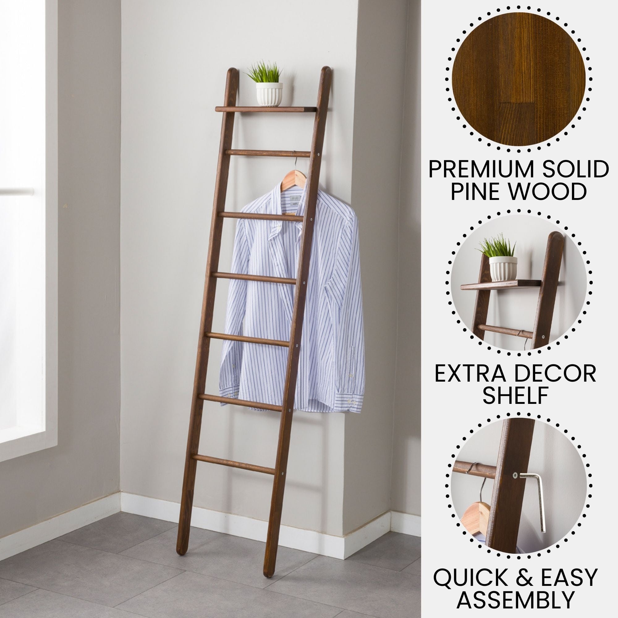 Solid Pine Wood Blanket Ladder