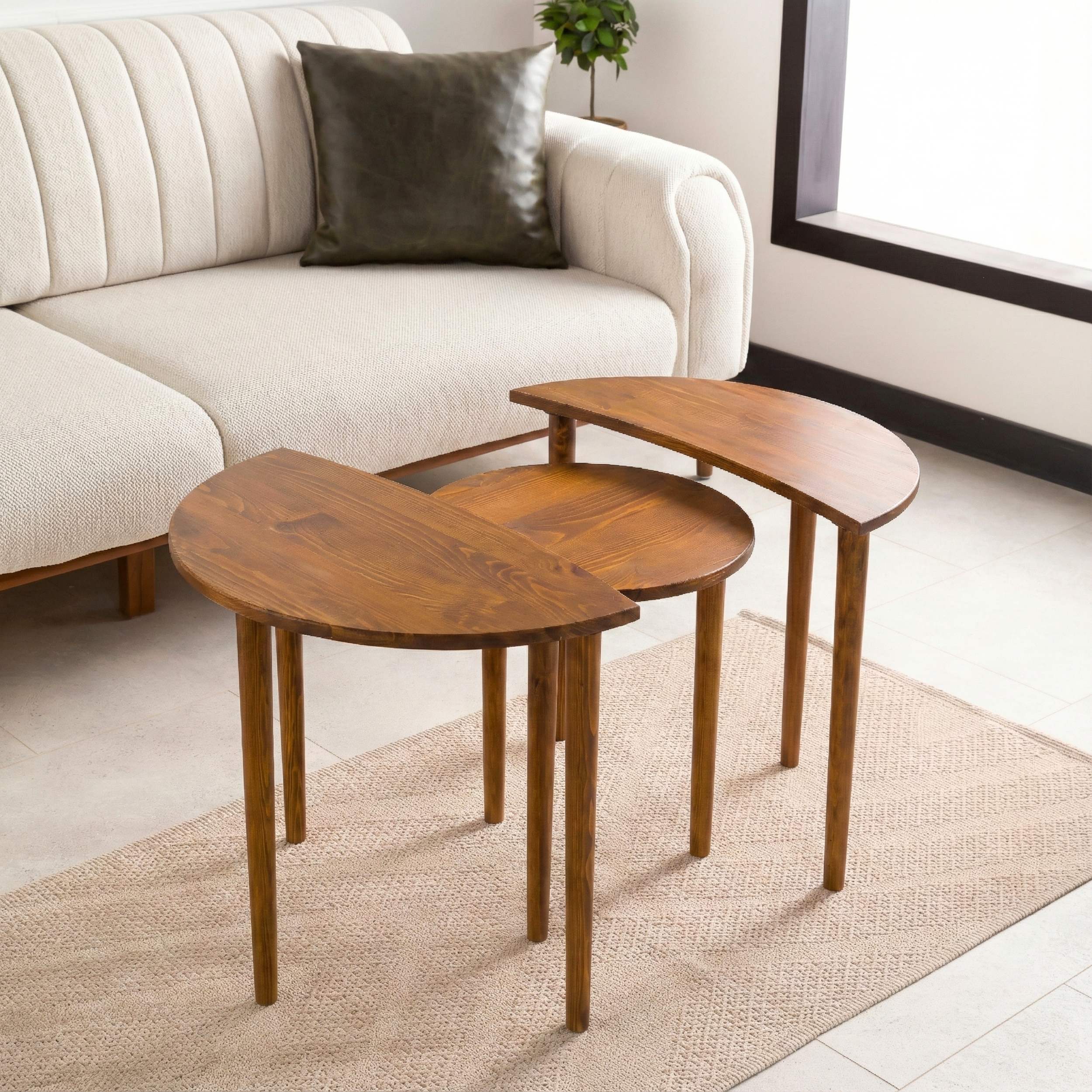 Solid Wood Round Nesting Coffee Table Set – Modular, Space-Saving Design for Modern Living